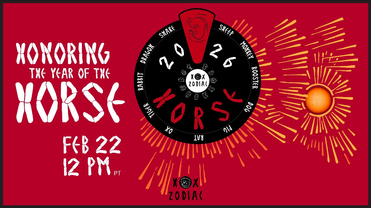 As hosts of the HOX Zodiac Celebration, we welcome you into the spirit of the Year of the Fire Horse — a lunar cycle that carries energy, movement, and transformation. In the language of HOX, the horse represents momentum and connection, bringing together art, science, and cultural imagination. We invite you to gather with us across shared digital space: bring a dish to share virtually, tell a story, reflect on your experiences, and exchange culture and knowledge as we celebrate this vibrant new cycle together.